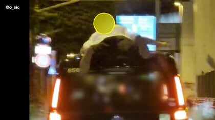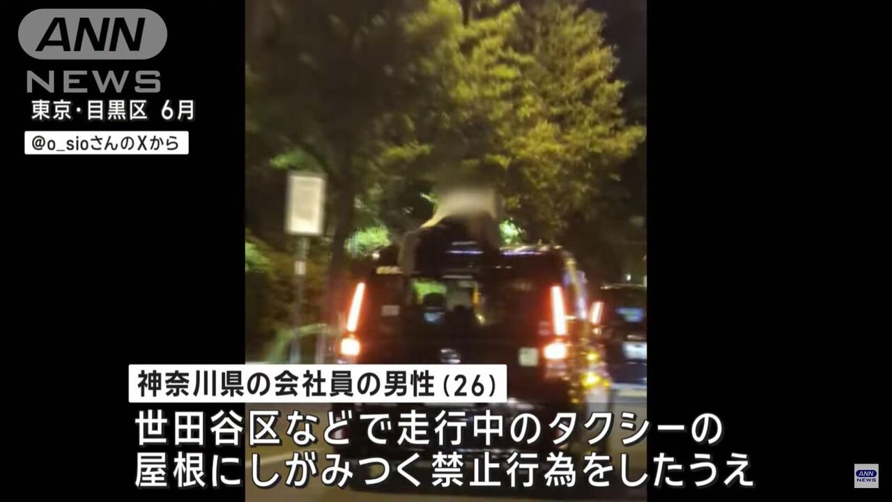 神奈川県の会社員の男性(26)は6月、東京・世田谷区池尻から目黒区青葉台にかけて走行中のタクシーの屋根にしがみつく禁止行為をした道交法違反の疑いで書類送検されました。