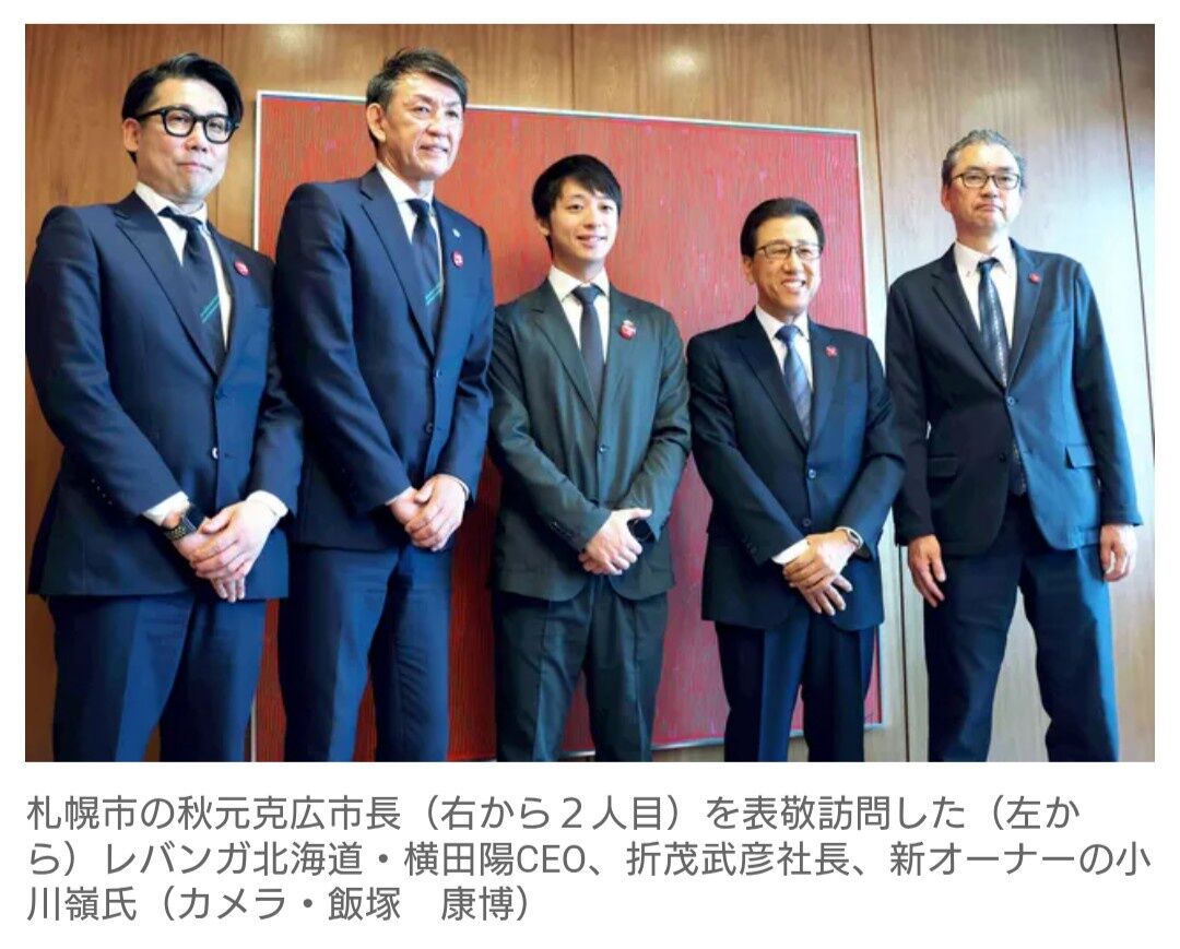 バスケットボールB1のレバンガ北海道の新オーナーの小川嶺氏が19日、札幌市の秋元克広市長と面会し、札幌駅周辺に新アリーナ建設の構想を明かした。