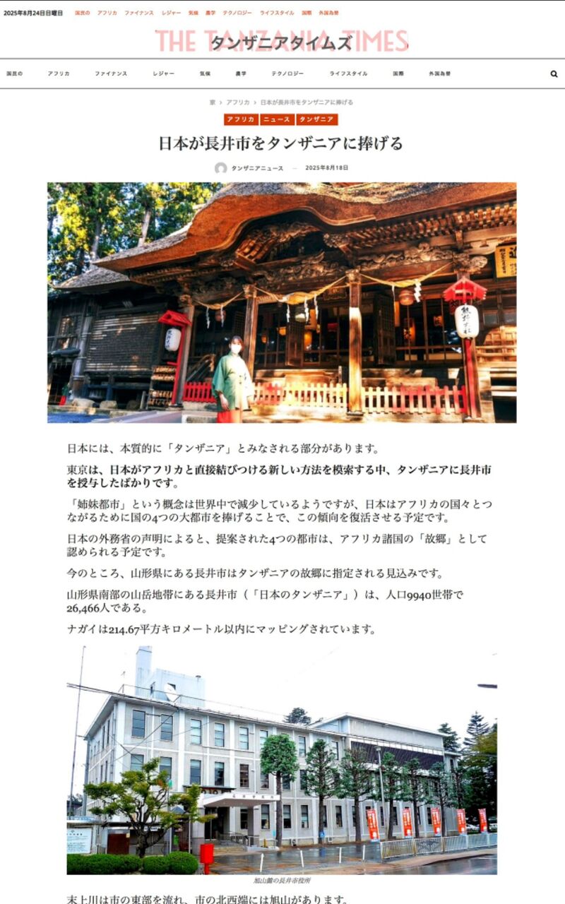 ⇒ 「日本が長井市をタンザニアに捧げた」