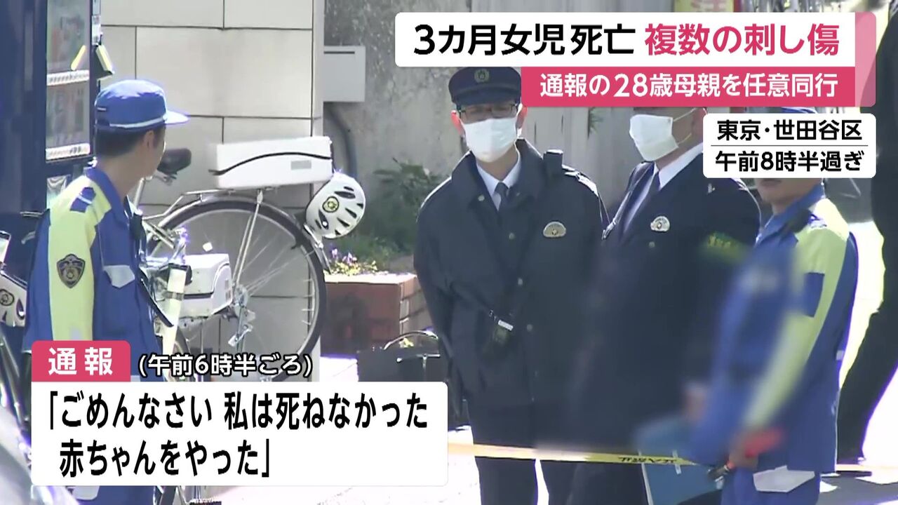 世田谷区のマンションで生後3か月の女児が刺されて死亡。母親らしき20代女性が逮捕される見込み。事件の背景には夫とのトラブルがあった可能性が。