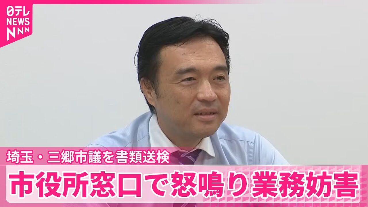 埼玉・三郷市の市議関根和也氏が業務妨害容疑で書類送検。職員への暴言や自宅前での抗議行動などの問題行動が報じられる。