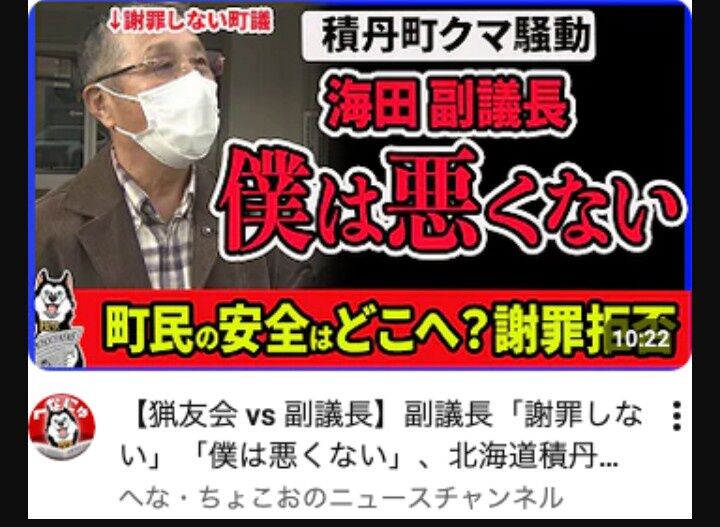 | | 猟友会とトラブルの副議長が町議会で陳謝「ご迷惑とご心配をおかけした」 北海道積丹町の猟友会出動拒否 …ました。 積丹町では今年9月、クマの駆除をめぐり、積丹町議会の海田一時副議長と地元猟友会がトラブルになり、海田副議長は「議会で予算も減らすからな」「辞… (出典:1:08) |