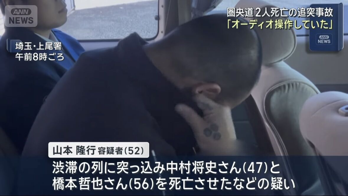 | 圏央道2人死亡 逮捕の運転手「オーディオ操作をしていた」 埼玉県の圏央道でトラックが渋滞の列に突っ込み男性2人が死亡した事故で、逮捕された男が「オーディオ操作をしていた」という趣旨の話をしていることがわかりました。 (出典:ABEMA TIMES) |