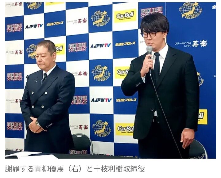 青柳は十枝利樹取締役とともに頭を下げ「このたびは、被害者の皆さまに、僕がご迷惑をおかけしたことを、この場をお借りしておわび申し上げます。大変申し訳ございませんでした。ならびに、僕を応援してくださるファンの皆さまと、全日本プロレスのファンの皆さまに、このようなご報告となってしまったことをおわび申し上げます。大変申し訳ございませんでした」と謝罪した。
