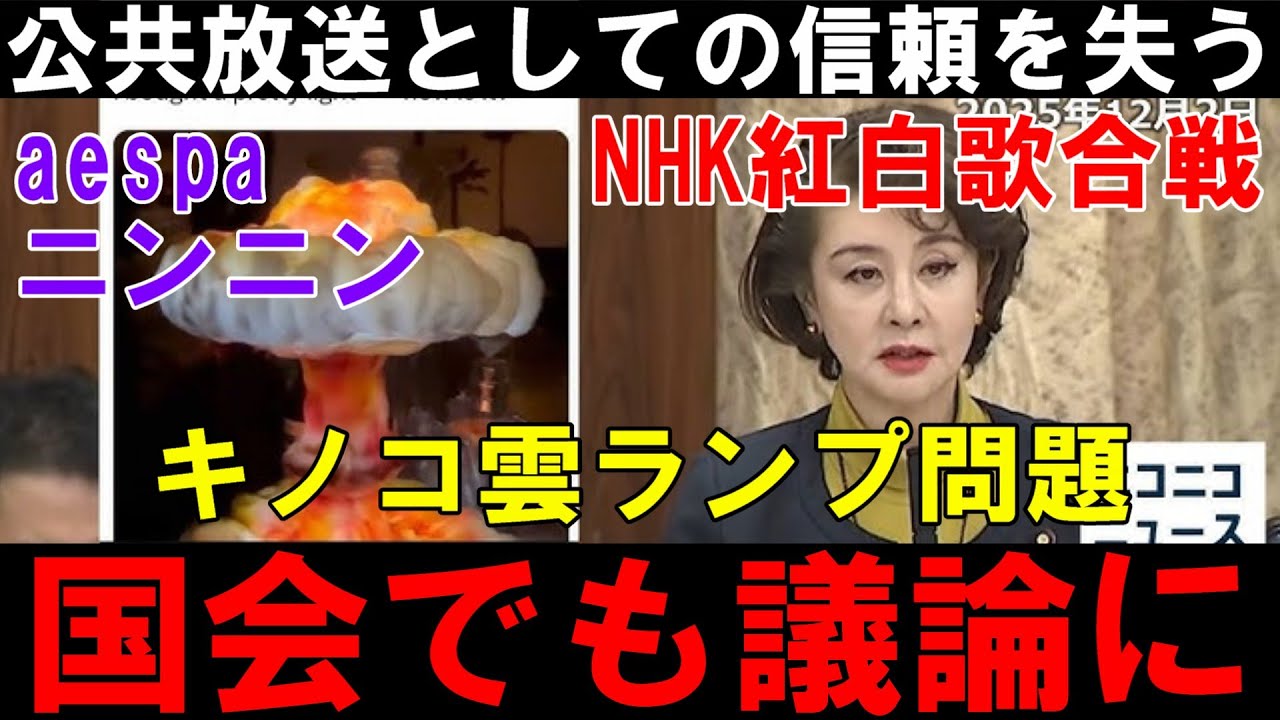 aespaメンバーの投稿した「きのこ雲ランプ」が波紋を呼び、NHKが揶揄の意図はないと説明するも反対署名が増加中。