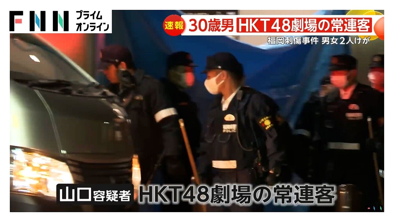 福岡のHKT48イベント常連客の山口直也容疑者が、男性スタッフを刺し事件。出待ちや警戒中にスプレーや刃物を使用した疑い。