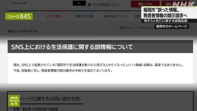 福岡市での母子3人の死亡に関する誤情報がSNSで拡散され、市はこれを否定。生活保護の申請に関するデマが問題に。