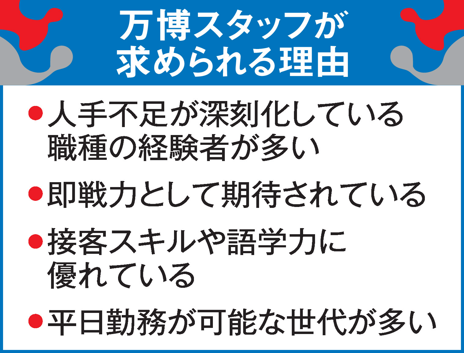 【【社会】人手不足のホテル・バス業界が閉幕後の万博スタッフに注目する理由とは?】の続きを読む
