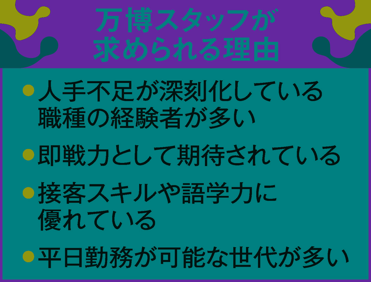 大阪・関西万博後、人手不足解消に向け、ホテルやバス会社が万博スタッフを採用しようと活動開始。
